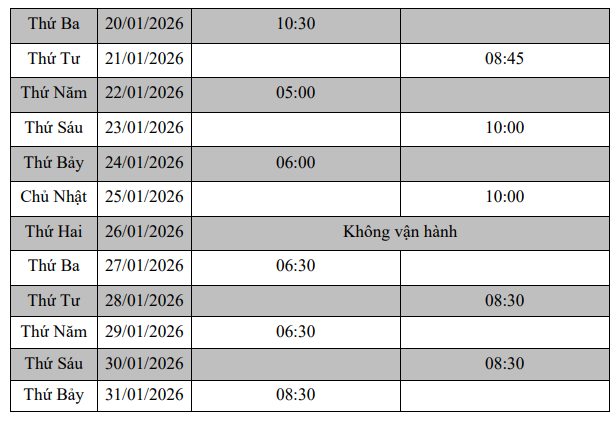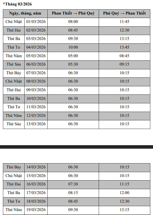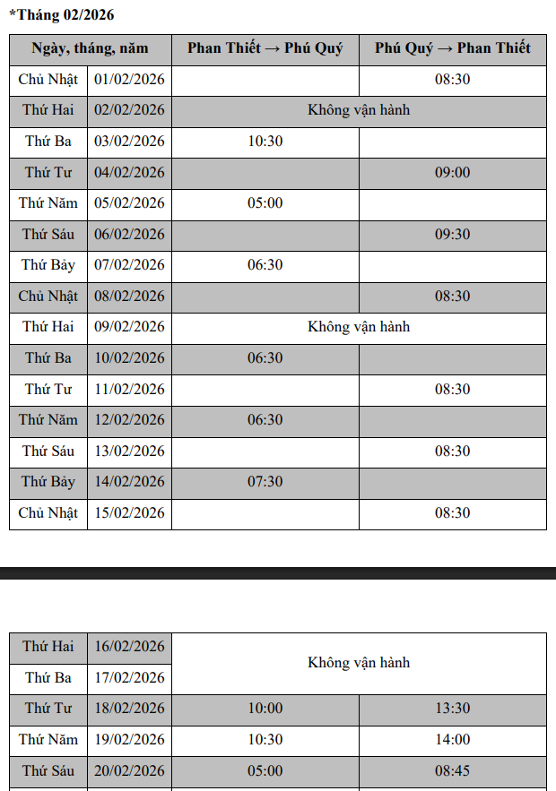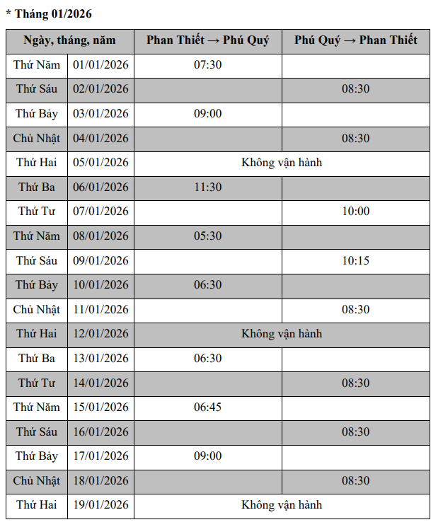 Hành khách có thể tham khảo lịch tàu Trưng Trắc Phan Thiết - Phú Quý Tết 2026 (tháng 01, 02, 03) dưới đây: