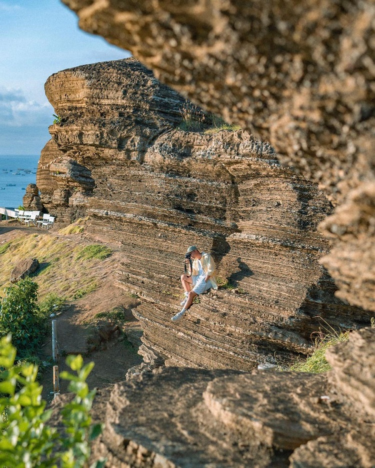 Những vách đá tự nhiên kết hợp biển xanh tạo khung cảnh dramatic. Lý tưởng để chụp ảnh phong cảnh, ảnh sáng tạo với sóng, đá và nắng. Thích hợp cho những ai muốn ảnh hoang sơ, thiên nhiên và “nghệ”.