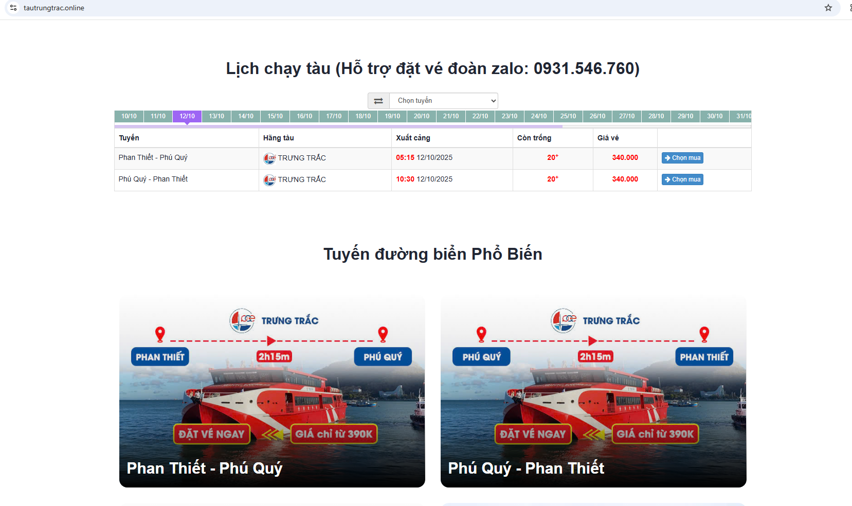 Để đáp ứng nhu cầu đi lại và du lịch tăng cao trong dịp Tết Nguyên Đán 2026, tàu Trưng Trắc dự kiến mở bán vé từ ngày 2/1/2026. Đây là thời điểm “vàng” để hành khách chủ động đặt vé sớm và lựa chọn chỗ ngồi tốt khi đi tàu Trưng Trắc Phú Quý.