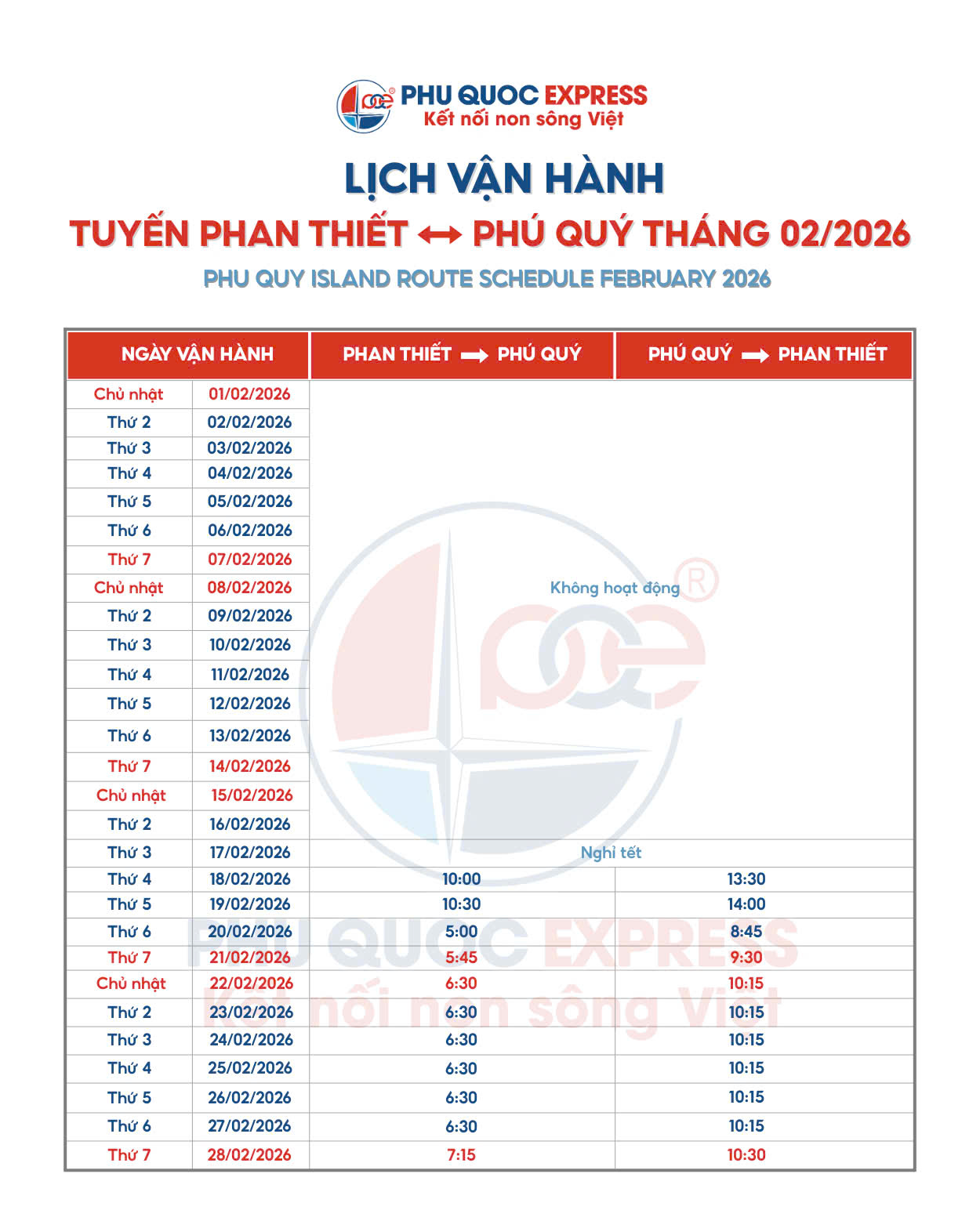 Lưu ý khi đi tàu cao tốc tháng 2